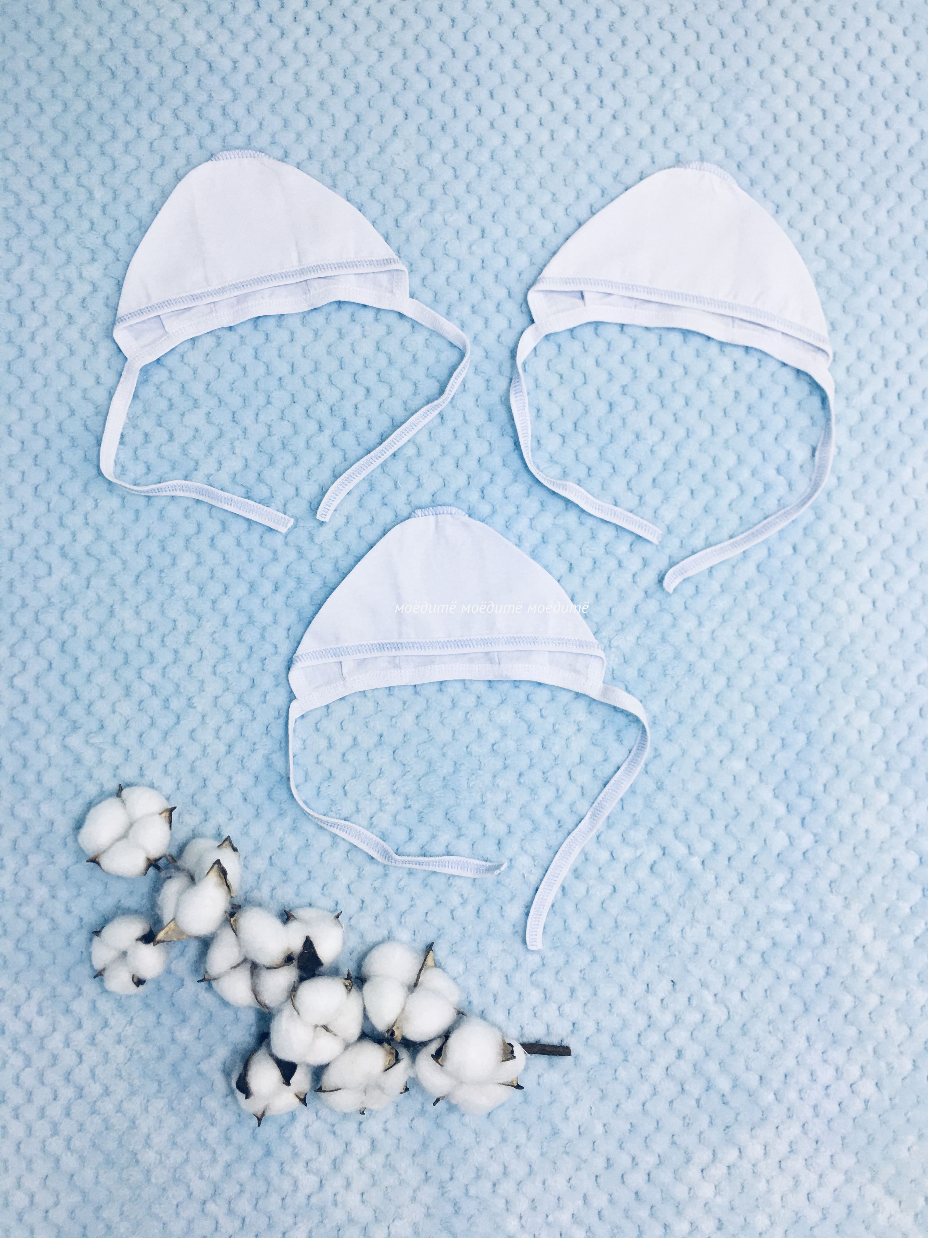"МоёДитё" чепчик кулирка белый с голубым ЧК015 "Гардения" в Краснодаре